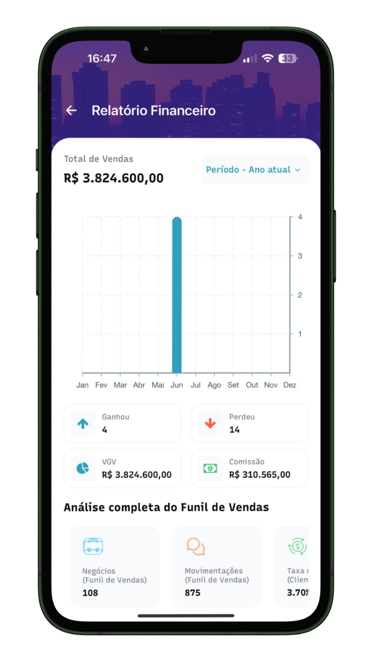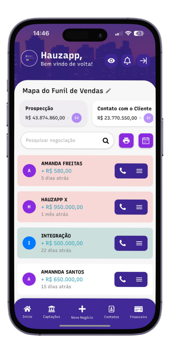 Personalize seu funil de vendas, adicione negócios, crie ou importe contatos e gerencie captações com facilidade.