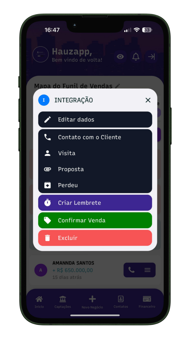 Personalize seu funil de vendas, adicione negócios, crie ou importe contatos e gerencie captações com facilidade.